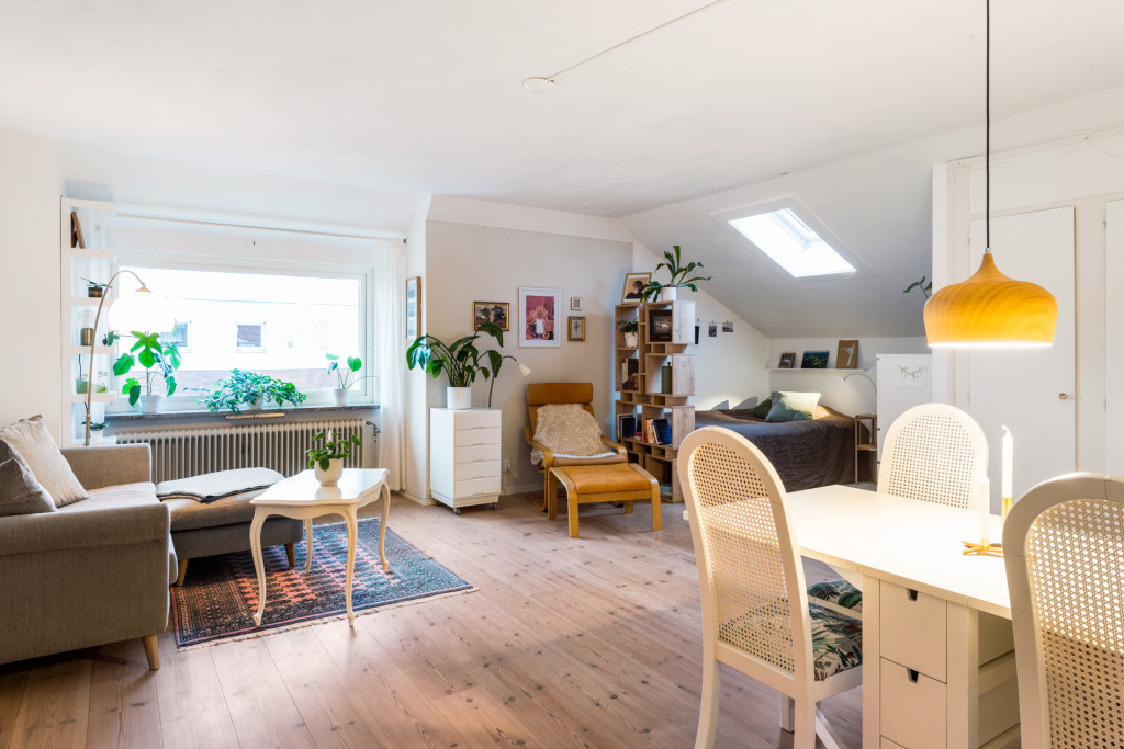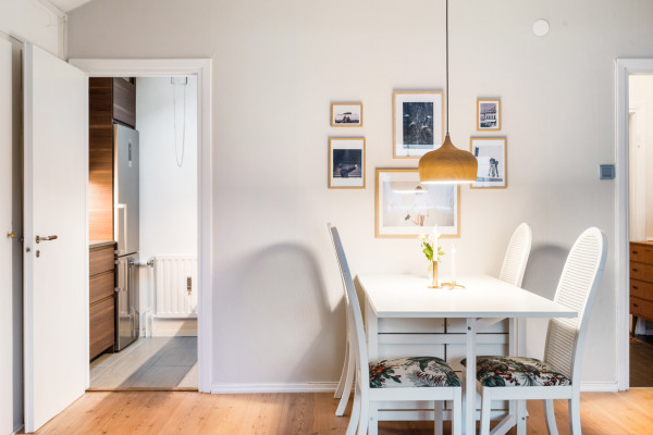 Att få kliva in i en charmfull vindsetta i centrala Norrtälje gör mig glad. Nyfiket tittar jag runt på alla tjusiga detaljer som snedtak, takfönster och fint trägolv. Jag förstår ganska snabbt varför dessa vindsettor inte bara är populära på grund av sin charm, de är också väldigt smart planerade. Det är som att allrummet naturligt delar av sig och ger plats för både matplats, sovalkov och soffgrupp. Hela bostaden är i fint skick och ger en hemtrevlig känsla. Här finns bra med förvaringsutrymmen via tre ordentliga garderober och stort vindsförråd som ligger lättillgängligt. Läget är såklart också en viktig faktor i ditt bostadsval. Vi befinner oss på gränsen mellan det mysiga villaområdet Mosebacke och Norrtäljes pittoreska stadskärna. Runt knuten finns matbutik, fik, apotek och pendlarbussar till Stockholm/Uppsala m.m. Föreningen har en gemensam balkong att nyttja. Välkommen att kontakta ansvarig mäklare för visning.