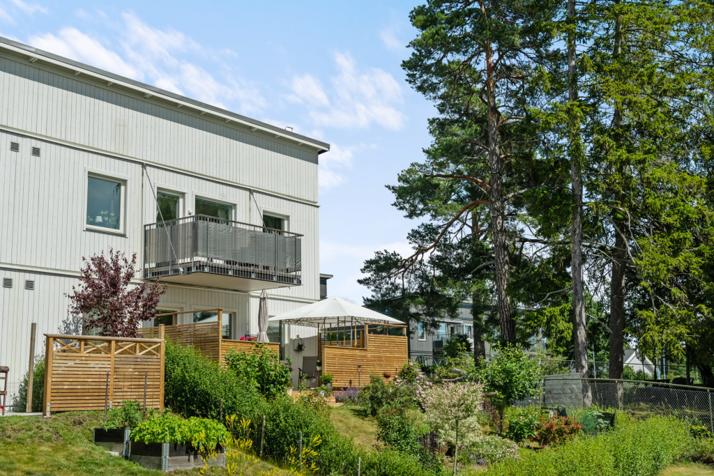 • Övriga byggnader/utrymmen: Till lägenheten hör ett förråd, beläget på gården nedanför huset. Det finns även ett gemensamt förråd för bland annat trädgårdsredskap och cyklar. I klädkammaren finns centraler för el samt tv, bredband och telefoni.