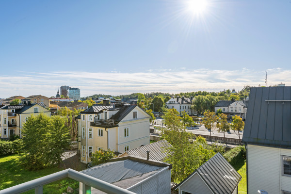 Vi befinner oss på vindsvåningen på Narvagatan 29, en central adress som ger er absolut närhet till busstorget och centrum. Det sprakande ljudet från braskaminen och brisen som letar sig in från den soliga balkongen ger oss en underbar känsla. Tack vare lägenhetens totalt 100 m² har vi hela våningen för oss själva! Lägenheten stod färdig 2012 och har egenskaper som enhetligt lagda parkettgolv, kvalitativt kök från Ballingslöv, två rymliga sovrum plus möjligheten att göra ett tredje, smakfullt duschrum i svartvitt utförande från 2014/2015 och en extra toalett. Bilen parkeras smidigt i garaget som finns i samma hus, där vi även finner förrådet. Detta är centrala drömmen som ni har väntat på, missa inte chansen att gå på visning!