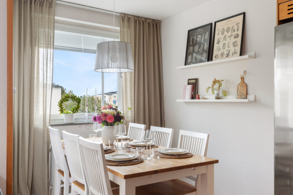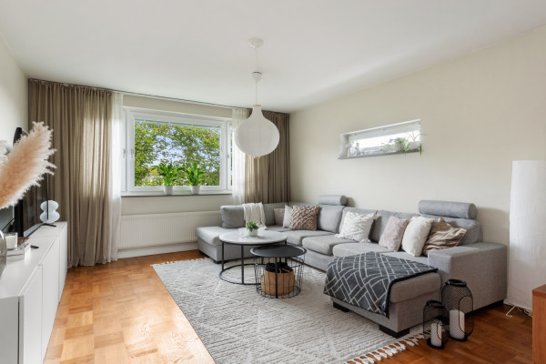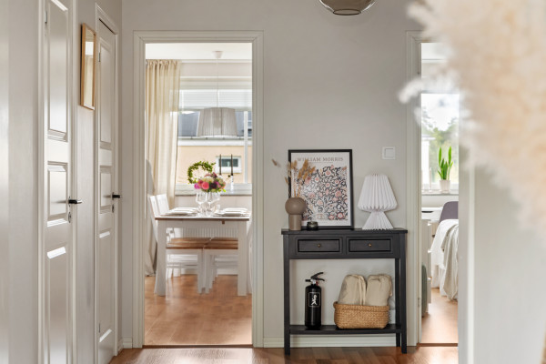 Rymlig och trivsam gavelfyra med lugna harmoniska färger