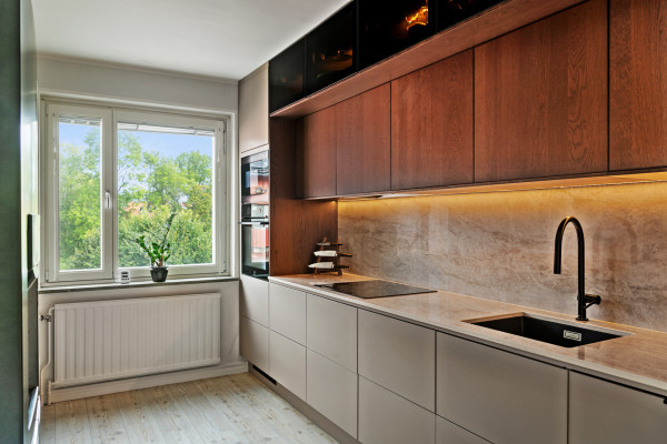 Planlösningen är både trivsam och flexibel med ett rymligt vardagsrum som bjuder in till umgänge och ett mindre sovrum som med fördel kan användas som dressingroom, hemmakontor eller barnrum. Köket renoverades 2022 och erbjuder en påkostad helhetskänsla med smakfulla materialval och full maskinell utrustning.