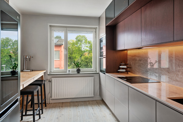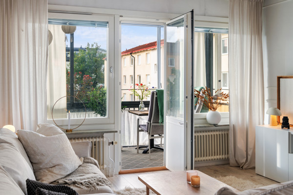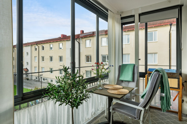 Välkommen till denna stilfulla och genomgående gaveltrea, en bostad som kombinerar ljus, rymd och modern elegans. Här flödar ljuset generöst in genom fönster i tre väderstreck och den stora inglasade balkongen i soligt söderläge blir en självklar plats för såväl avkoppling som sociala stunder.