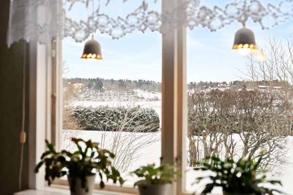 Ljust och rymligt kök med härligt ljusinsläpp från de generösa fönsterpartierna. Köksluckorna renoverades 1990. Här finns plats för ett matbord där ni kommer kunna bjuda vänner och familj på utsökta måltider, så trevligt! Köket har gott om förvaringsmöjligheter i såväl under- som överskåp, städskåp och skafferi. Gott om ytor för matberedning på bänkskivan och diskbänken som är av rostfritt stål. Ovanför diskbänken finns ljust kakel på väggarna som stänkskydd. Den maskinella utrustningen består av kyl/frys (Electrolux, bara 2 år gammal), diskmaskin (Elektro Helios), spis med ugn (Electrolux) och fläkt (Franke). Väggarna är ljust tapetserade och golvet av plastmatta.