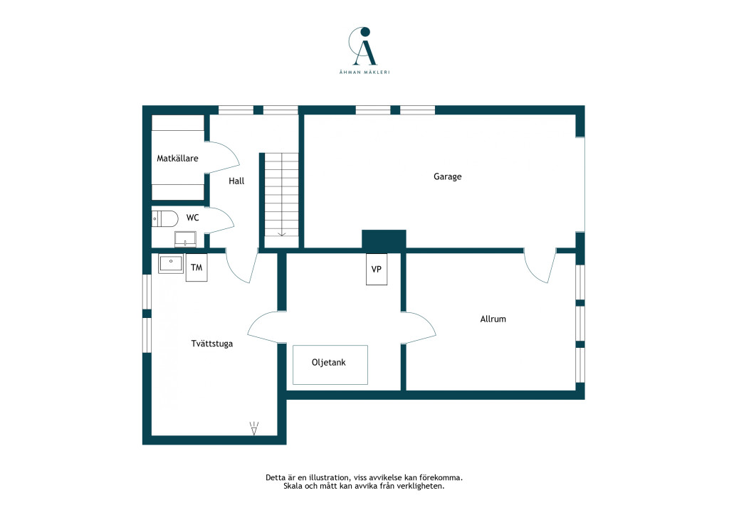 Pannrummet är utrustat med oljetank som rymmer 3.000 l olja och värmepanna. I åtgärdsrapporten finns förslag på byte till luft/vatten system som har en återbetalningstid på ca 5 år. Ytskikten består av målad betong.
