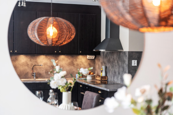 Vi vandrar vidare in till Länghemsköket som erbjuder er alla som helst möjligheter att utöva magi till familjen och gästerna. Köket installerades av förra ägaren 2022/2023 och kommer i mörkt utförande. Tack vare dess utformning finns gott om plats för matberedning på de breda bänkskivorna av laminat och förvaring i såväl under- som överskåp. Det finns dessutom städ- och skåp för valfria objekt. Ljuskällorna består av flertalet lampor i taket, dimbara spotlights med varm belysning under överskåpen och stora fönsterpartier. Vid det största fönstret finns plats för stort matbord åt ca 6-8 personer. Den maskinella utrustningen består av induktionshäll samt ugn från Husqvarna, kolfilterfläkt från Franke, integrerad diskmaskin från Grundig och kyl/frys från Electrolux.