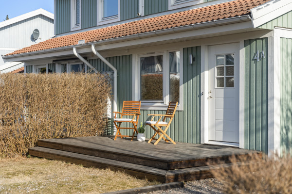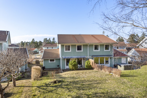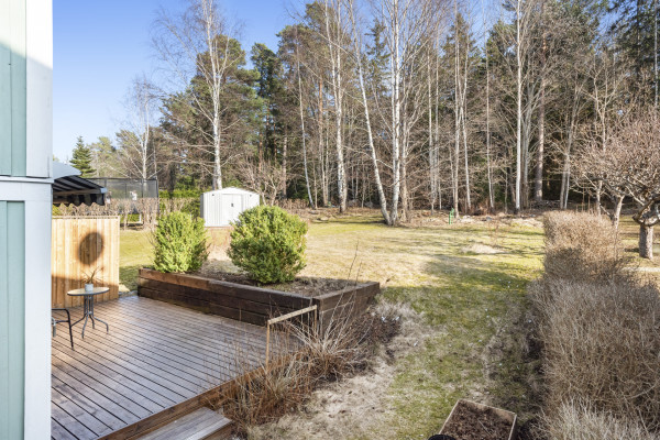 • Beskrivning tomt: På framsidan av huset finns en trevlig uteplats vid entrén, en naturlig plats för dig som vill njuta av härlig eftermiddags- och kvällssol. Här finns utrymme för matbord eller en mindre cafégrupp, beroende på hur du vill använda ytan. Intill finns även en mindre gräsplätt och en häck som ramar in och skapar en ombonad känsla mot både granne och omgivning. Baksidan är som en liten idyll som gränsar mot skogsområde. Här möts du av ett lugn som är svårt att skapa men lätt att uppskatta. Altanen intill huset blir en självklar plats för avkoppling, medan gräsmattan bjuder in till lek och rörelse. Att skogen ligger precis bakom ger både en fin inramning och extra ytor för barnens upptäckarlust.